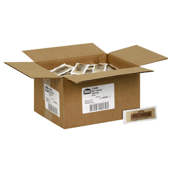 Heinz Malt Vinegar single serve 9 gm. packets (200 per case) are a convenient choice for restaurants, cafeterias, fast food, takeout, concessions and more. Made from fermented malt juice, the bold flavor of our malt vinegar can transform a classic dish into something they'll come back for time and time again. Offer patrons Heinz Malt Vinegar packets with seafood dishes, fish and chips, meat, macaroni salad, bean salad and more. At home and away from home, consumers know and love the great taste of Heinz.
